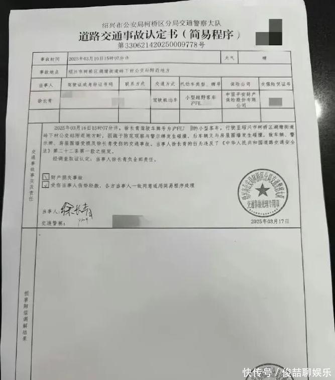 此前报道:1月29日,有媒体发文曝光演员金晨肇事逃逸还让助理顶包,该条报道迅速登上热搜,引发广泛关注。报道指出,有网友在社交平台发文称,2025年3月16日,浙江省绍兴市柯桥区发生一起交通事故,事故发生后,驾车的金晨让自己的助理顶包,她本人则在第一时间逃离事故现场。29日下午,记者从绍兴市公安局获悉,关于网传金晨疑似肇事逃逸让助理顶包一事,局里正在核查。记者从网传的《绍兴市公安局柯桥区分局交通警察大队道路交通事故认定书(简易程序)》中看到,当事人徐长青在2025年3月16日15时07分许,驾驶小型客车与警示牌发生碰撞,后车辆又与房屋围墙发生碰撞,致车辆、警示牌、房屋围墙受损,徐长青受伤。